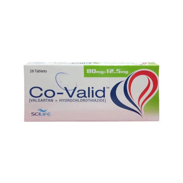 Co-Valid 80/12.5mg is a prescription-only combination medication used to treat high blood pressure (hypertension). It contains Valsartan (80mg), an angiotensin II receptor blocker (ARB), and Hydrochlorothiazide (12.5mg), a thiazide diuretic.